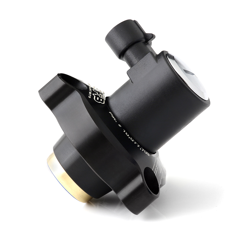 まず、チューニングされたエンジンを高ブーストで運転すると給気中に大量の熱が発生します。純正品はコンプレッサーの直上に配置されているため、吸入空気の最も高温の部分とコンプレッサーカバー自体の熱にさらされます。 これにより純正ダイヤフラムが破裂する可能性があり破裂が検知されないまましばらく放置されると、ECUがターボ回転数を上げることでブースト圧の低下を補おうとするためターボに損傷を与える可能性があります。 次に、純正BPVの動作はスロットルレスポンスを重視したものではありません。 柔らかいスプリングとバキュームホースに直列に配置されたソレノイドバルブのため、純正品は全開と全閉の2つの状態しか動作できません。 純正品BPVは、残念ながら既存のブースト圧に応じて段階的に開閉する能力がないため、スロットルを完全に開いていない状況でバルブが必要以上に排気されるとスロットルレスポンスが低下します。 T9354は、バルブ部品に実績のある金属とシリコンを採用することでこれらの問題を解決し、過酷な条件下においてもDV+は長寿命を実現します。 パフォーマンス面では、DV+は厳選されたスプリングレートとスプリングプリロード調整機能を備えているため、段階的に作動し、スロットルレスポンスを鋭敏にします。 これはGFBのTMS原理の基盤であり、ギアシフト時のピークブースト到達時間を30%短縮することが実証されています。 この利点は、コーナーリング時に車のバランスを取るためにスロットルをモジュレートするような状況でも特に顕著です。